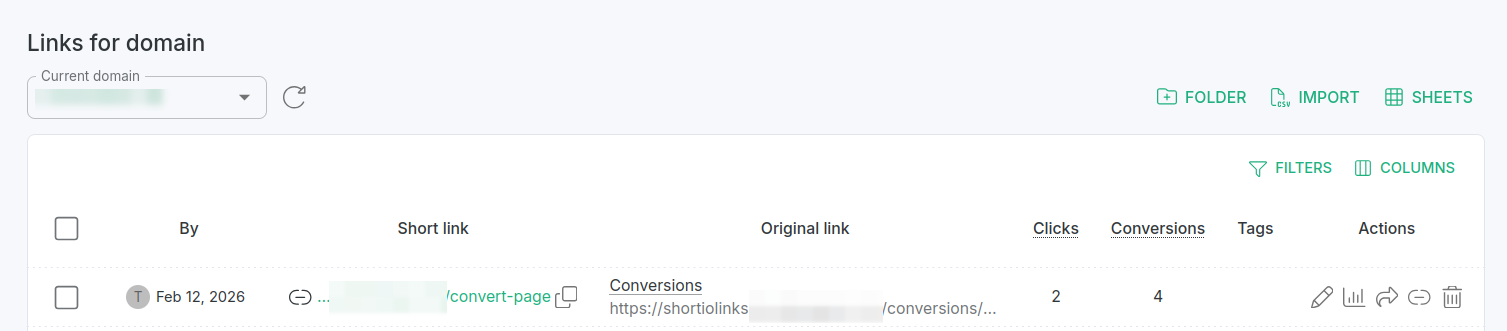 Sign in to your Short.io account and select the domain for which you want to enable conversion tracking.