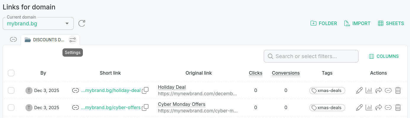 In the Dashboard navigate to the Branded links panel and select your folder.