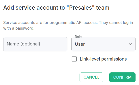 Service accounts are intended exclusively for programmatic API access. They cannot sign in to the Short.io interface using a username and password.