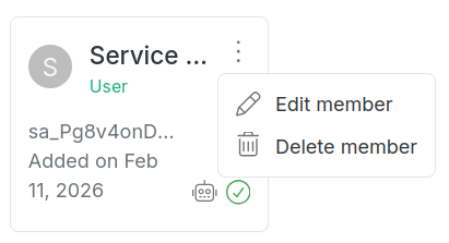 From the team's Members section, click the Add new member button and select Add service account: