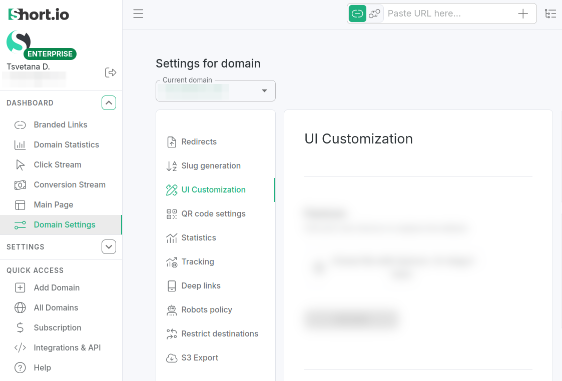 You can customize the look and feel of your domain’s pages (such as 404 pages and links bundles) by defining custom colors for backgrounds, text, and interactive elements, as well as selecting a custom font family. These settings are available under the UI Customization section of the domain settings.
