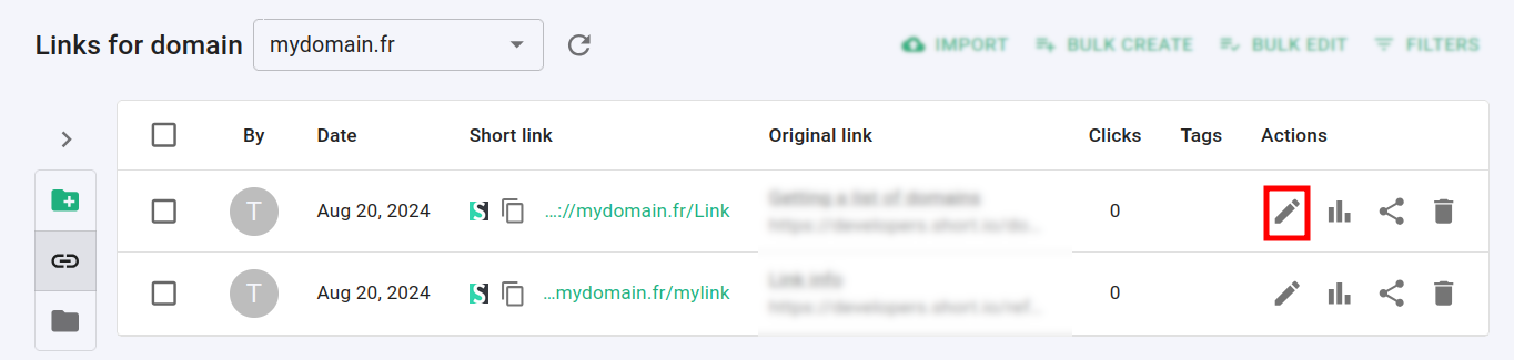 to edit the short link which you updated via the API: