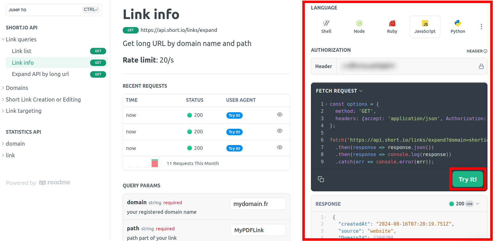 Note: The API functionality is available in every price plan. The only prerequisite is that you are a registered Short.io user.