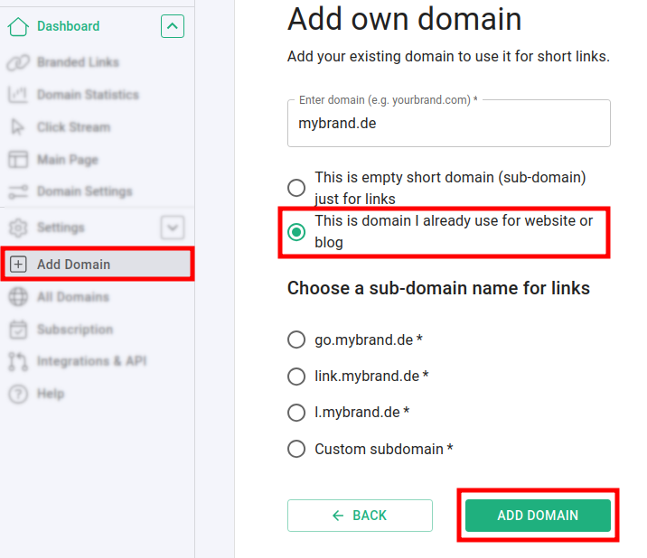 A note of caution: Connecting your existing domain with Short.io