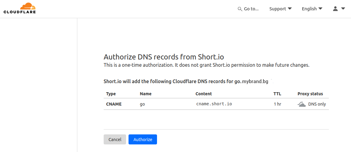Note: If you want to configure your subdomain manually follow the instructions in the article: https://help.short.io/en/articles/9720643-how-to-connect-my-cloudflare-subdomain-with-short-io