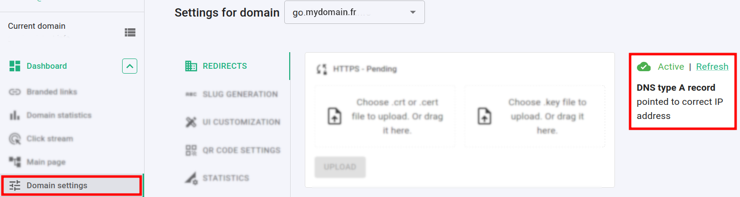 Important note: If the domain is Inactive then wait for a few hours and click on Refresh to check if the status has changed.