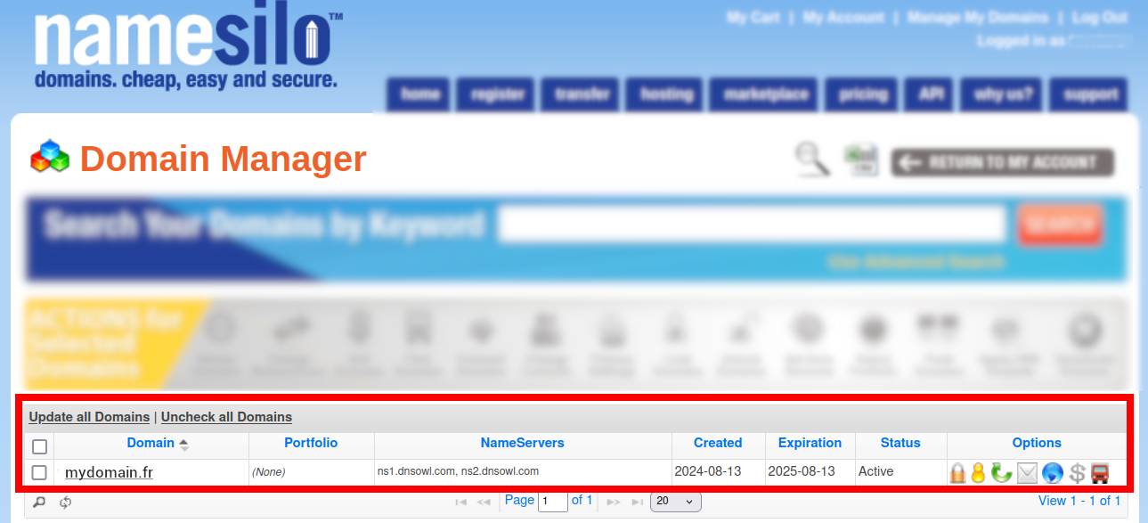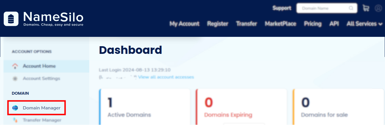 Sign in to your NameSilo account.