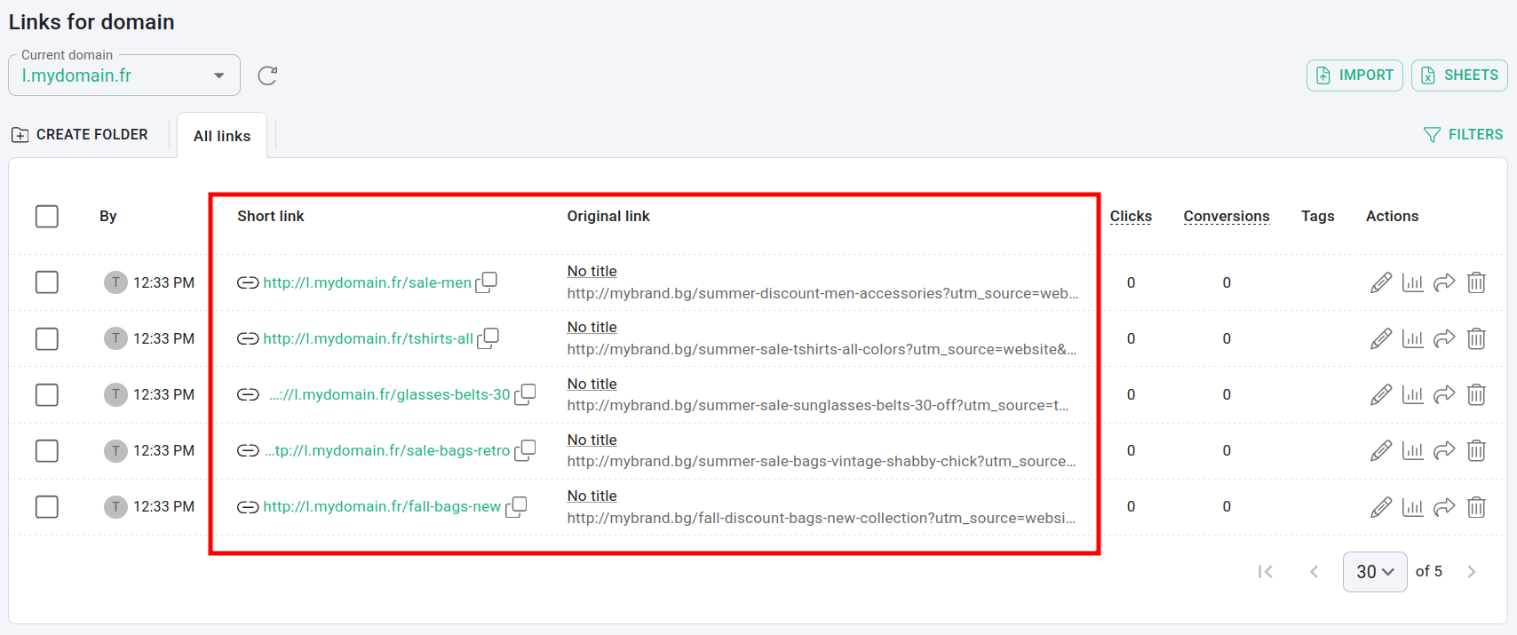 You can review the newly created links in the Dashboard -> Branded links menu: