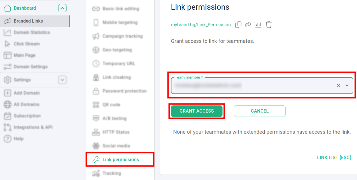 The Link-level permissions feature allows you to grant team members the ability to view not only the short links they have generated as Users but also to access certain other specific links if needed.