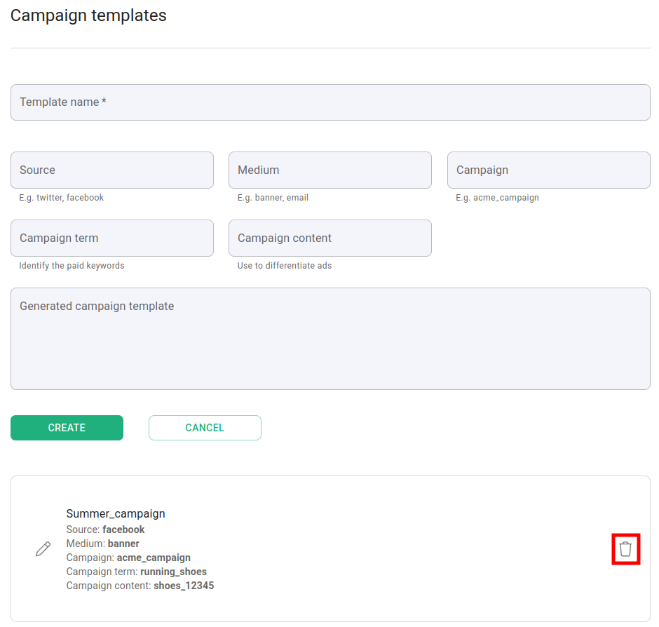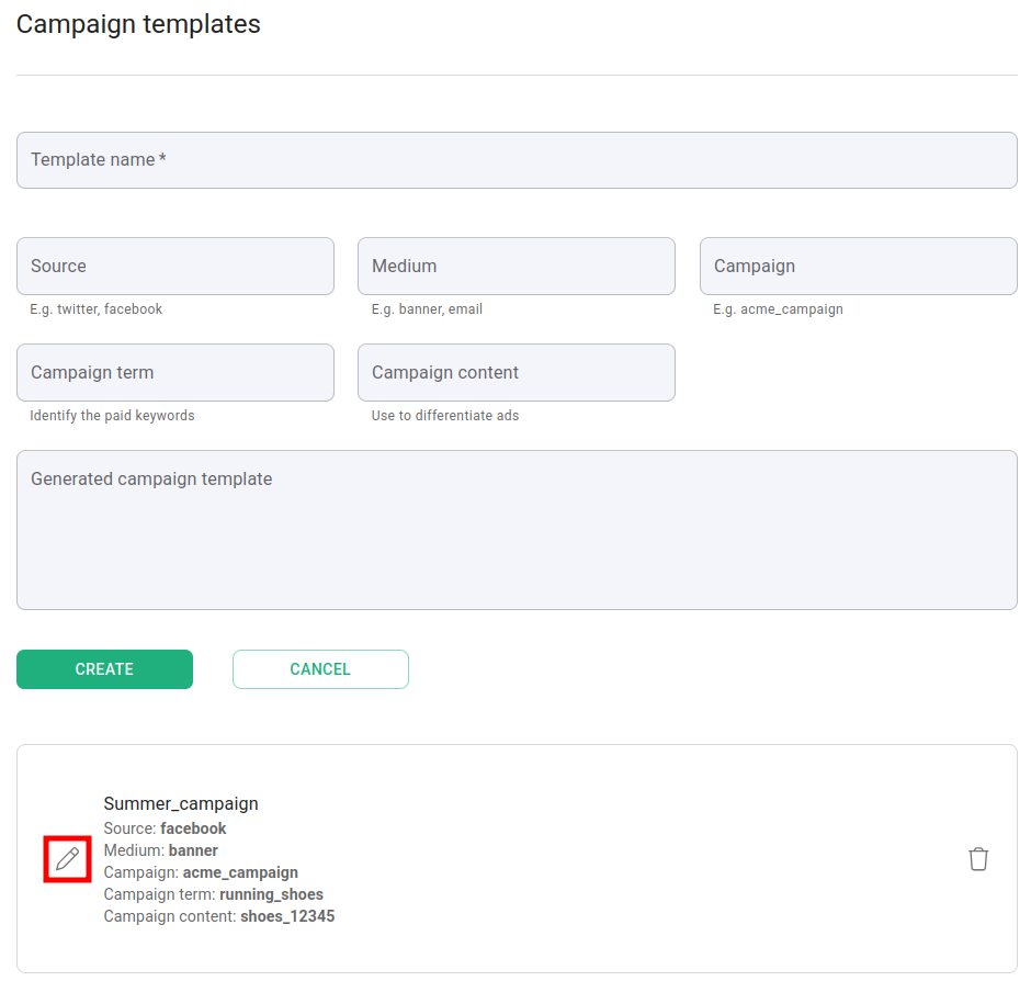 In the Campaign templates panel fill in the needed UTM tags in the respective fields: