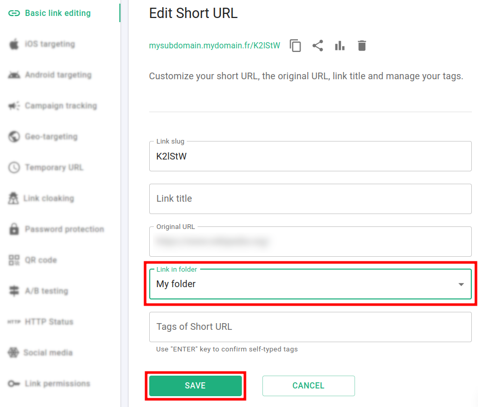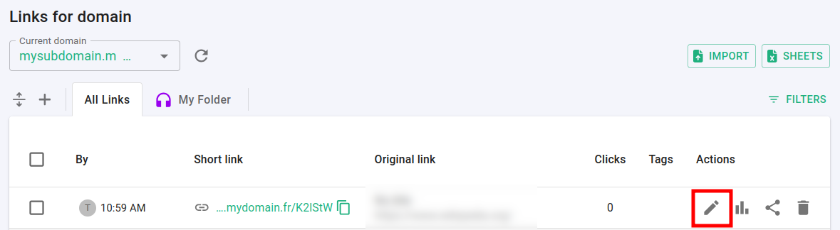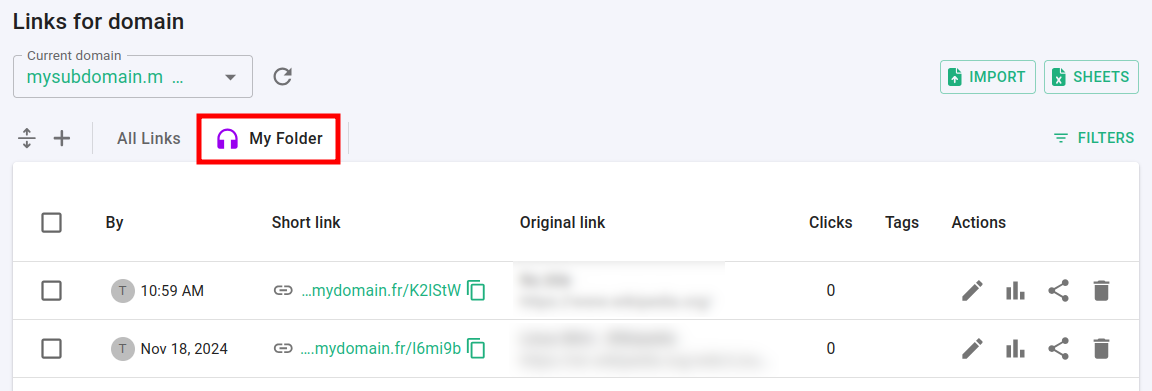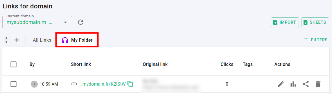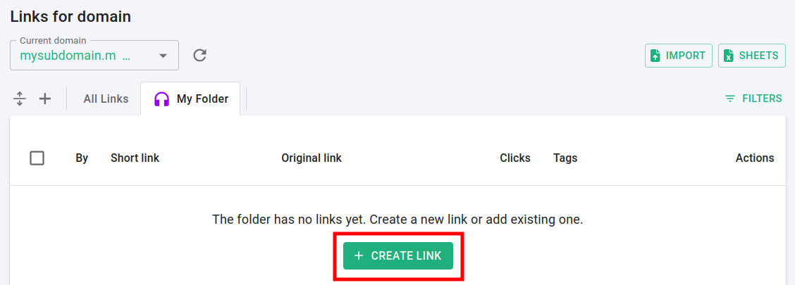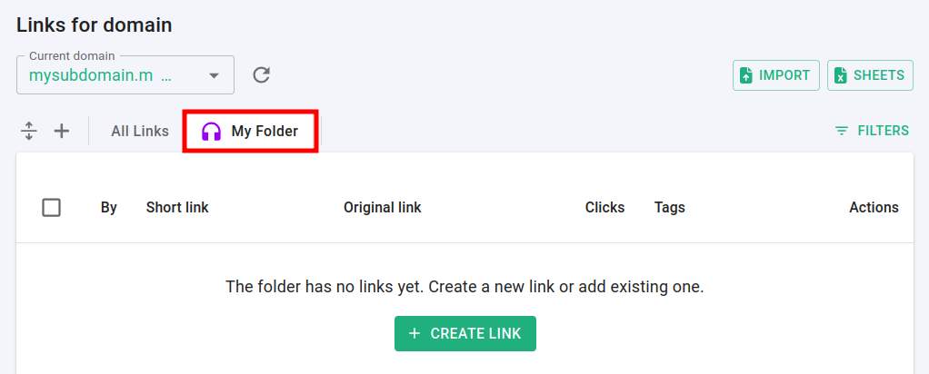 In the Dashboard navigate to the Branded links panel and click on a folder in which you want to add links: