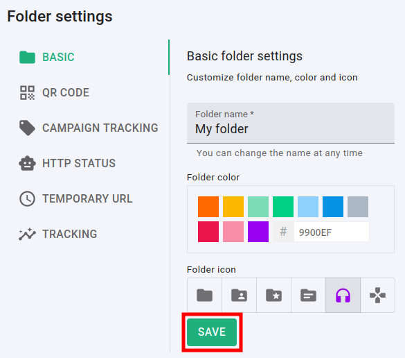 You can change the appearance of a folder by selecting a new icon and a custom color.