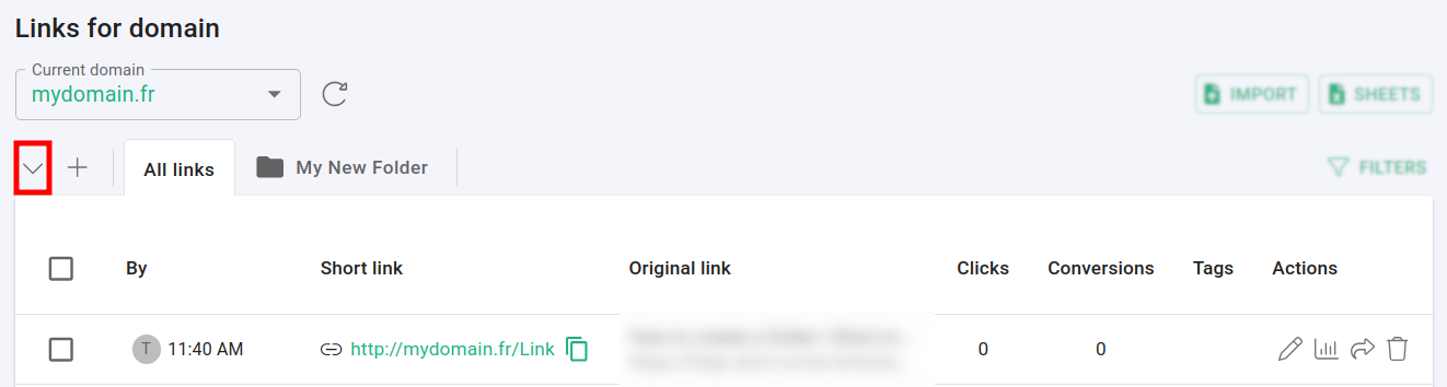 In the Dashboard navigate to the Branded links panel and click on
