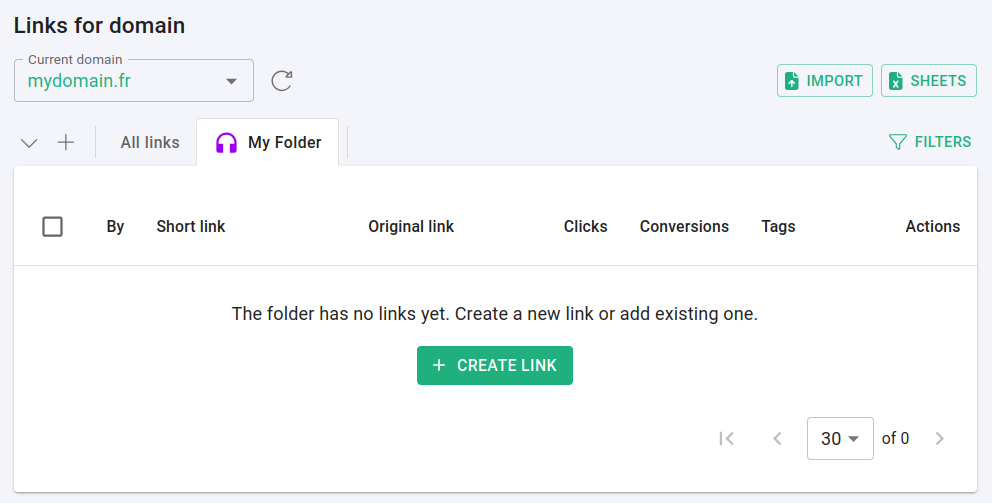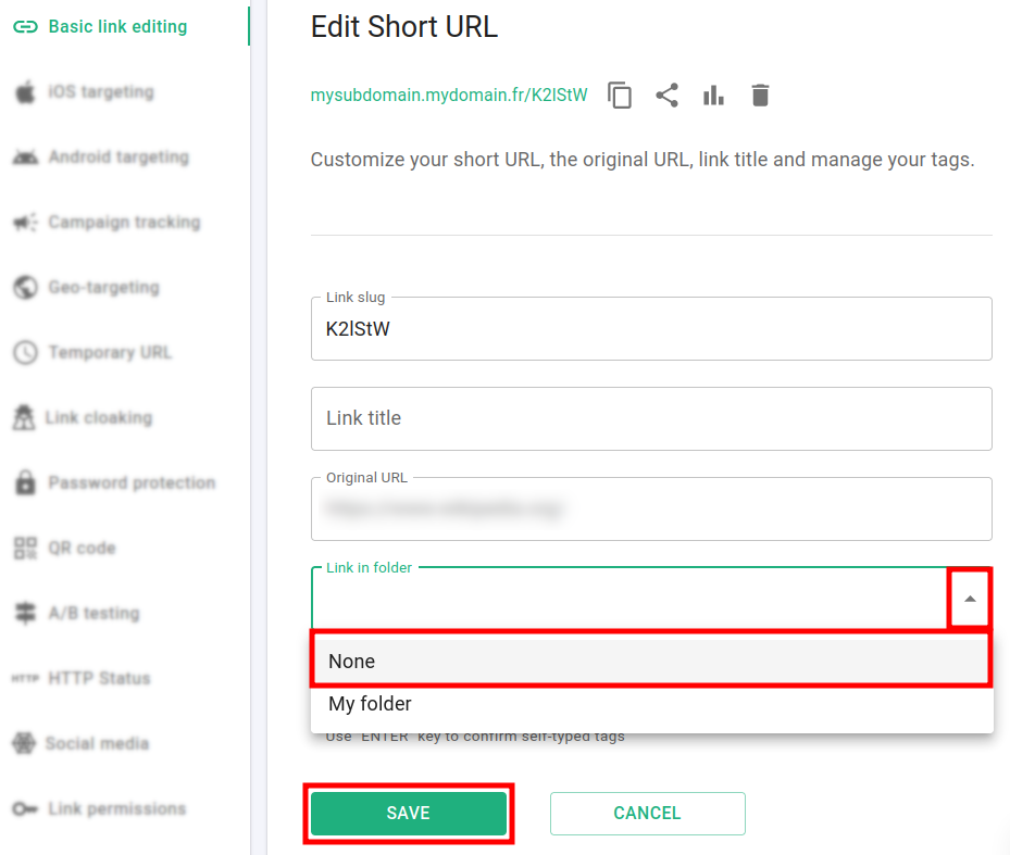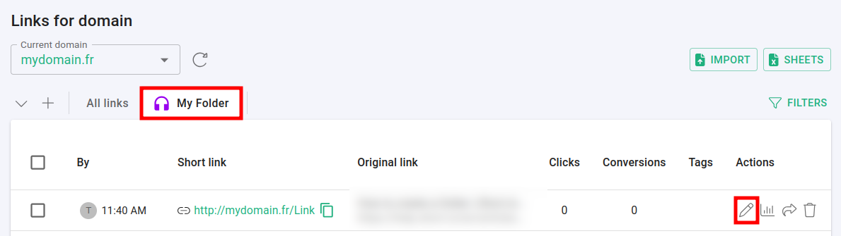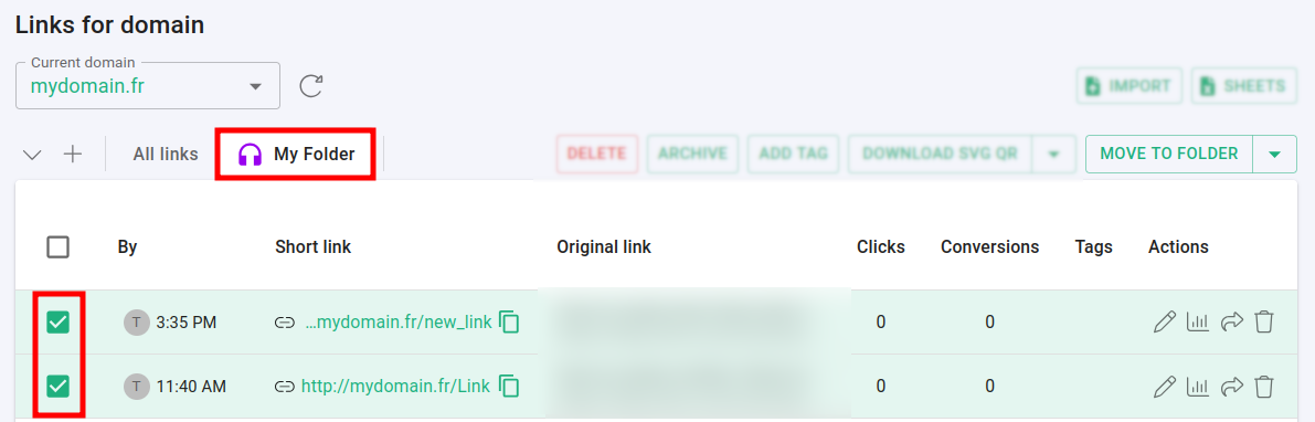 Go back to the Branded links panel and click on your folder.