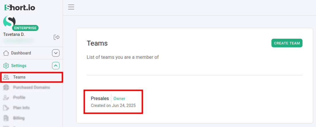 Navigate to the Settings -> Teams menu and select the team which you want to remove:
