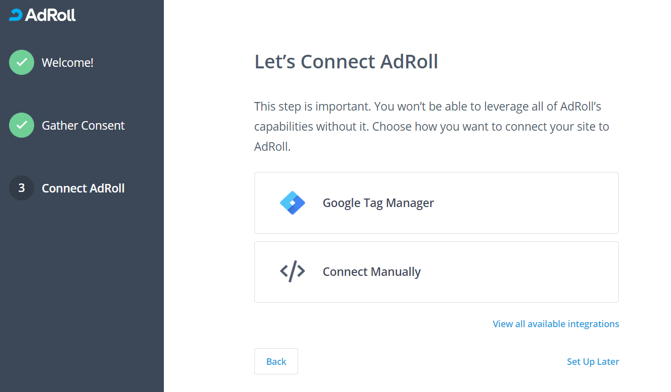 Note: AdRoll and Short.io integration requires the Pro Plan.
