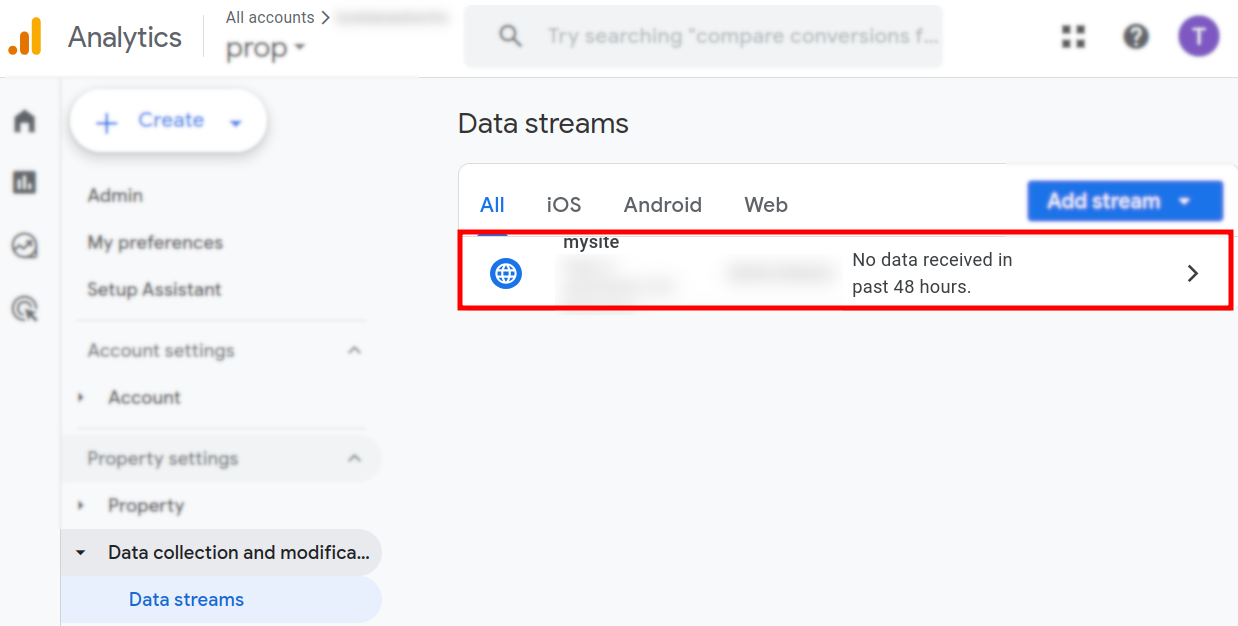 Note: Make sure you complete the data collection activation by following the setup instructions from the Web stream details screen.
