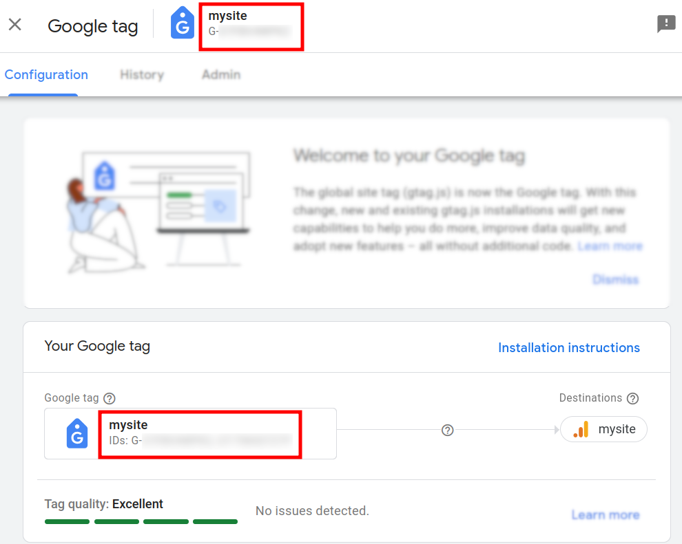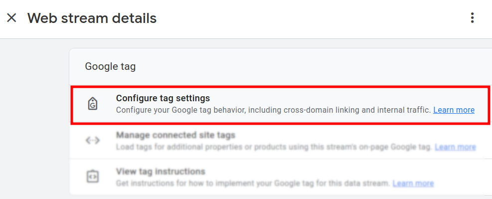 In the next screen navigate to the Google tag section and click on Configure tag settings:
