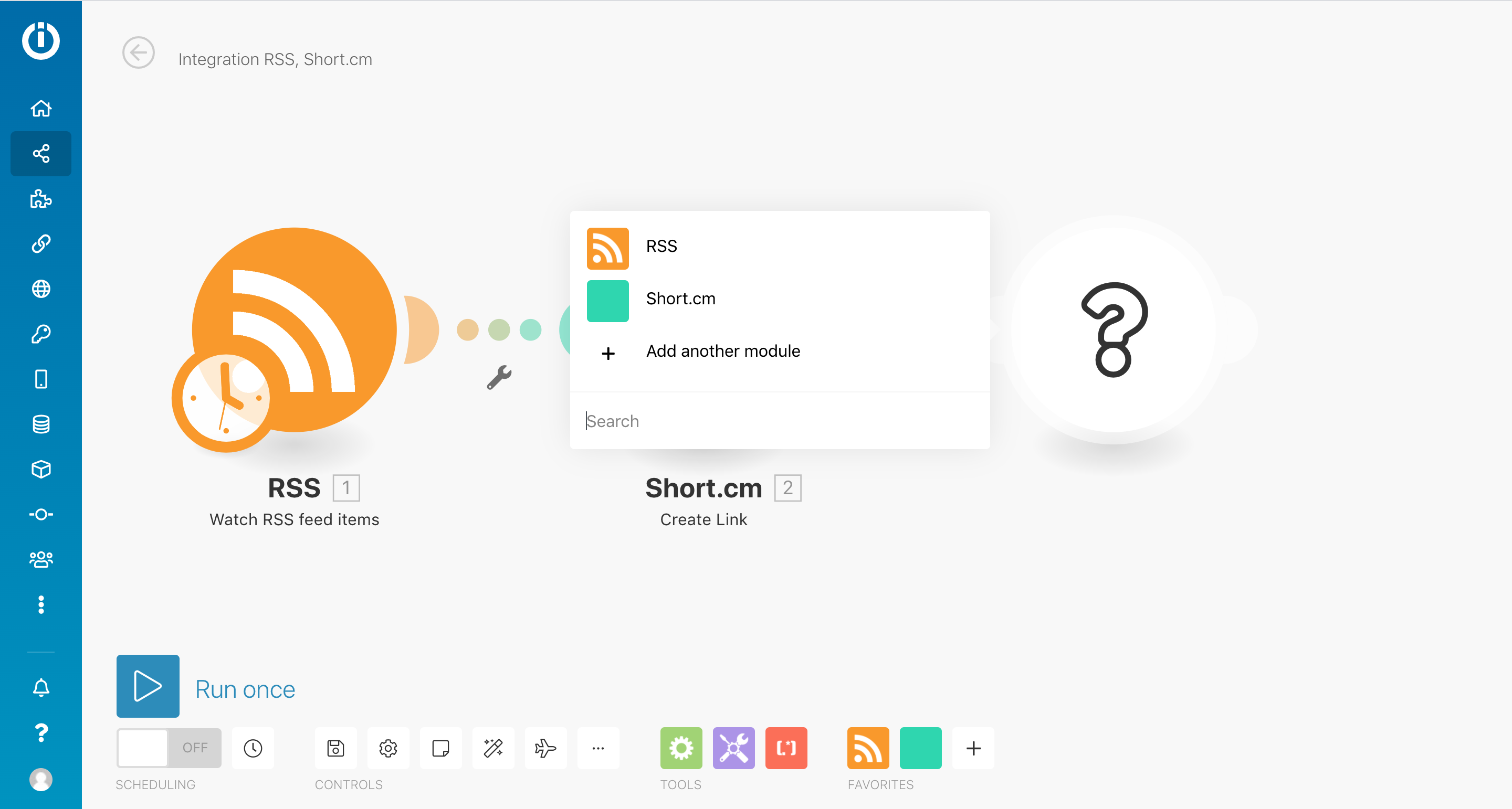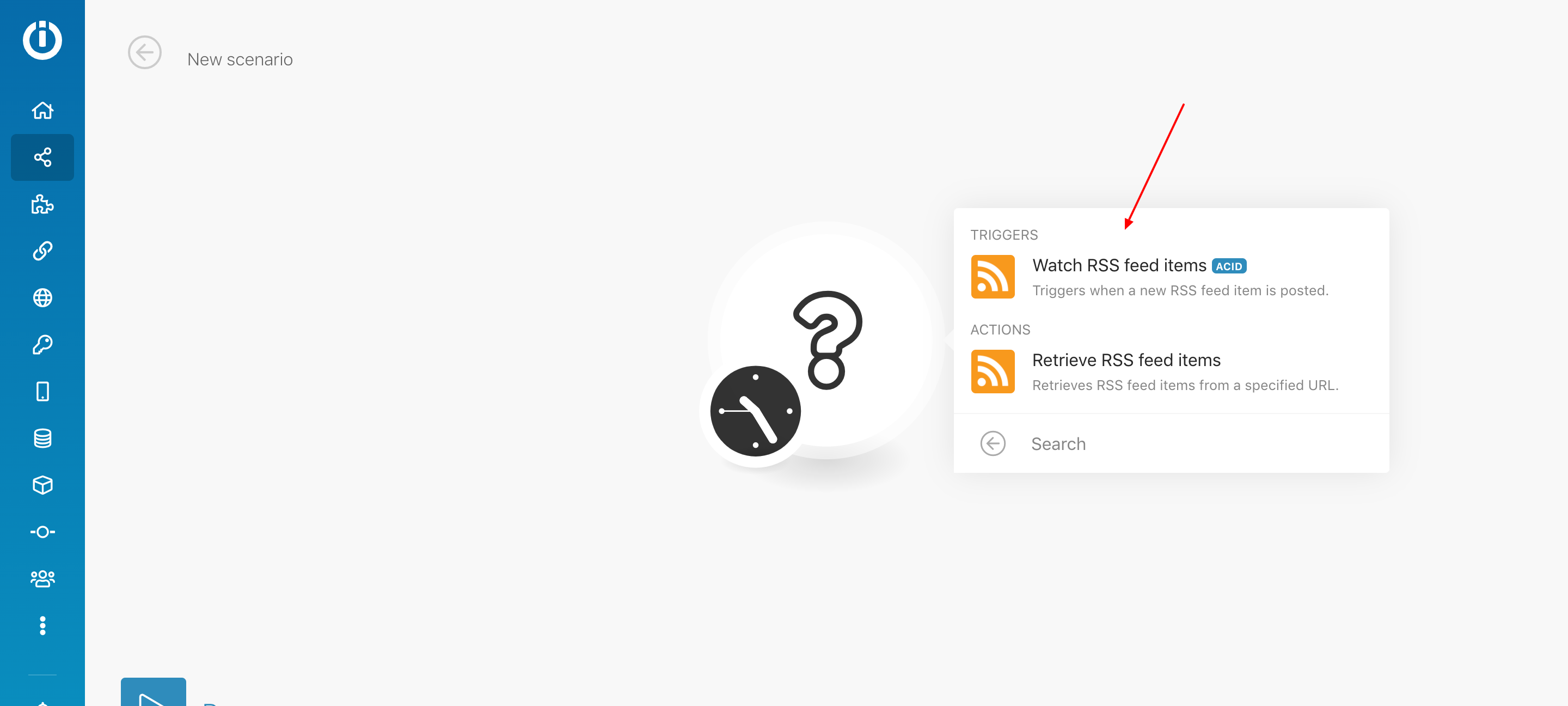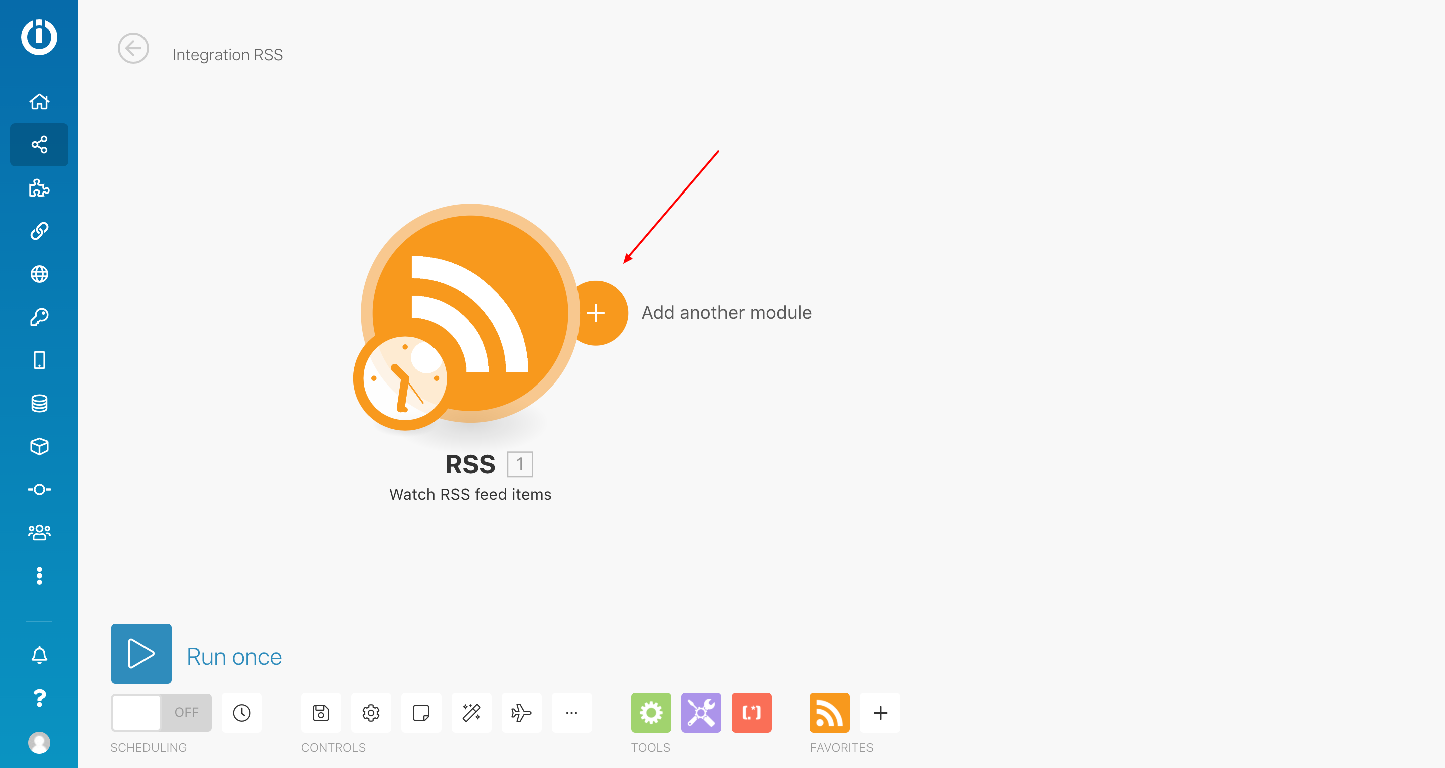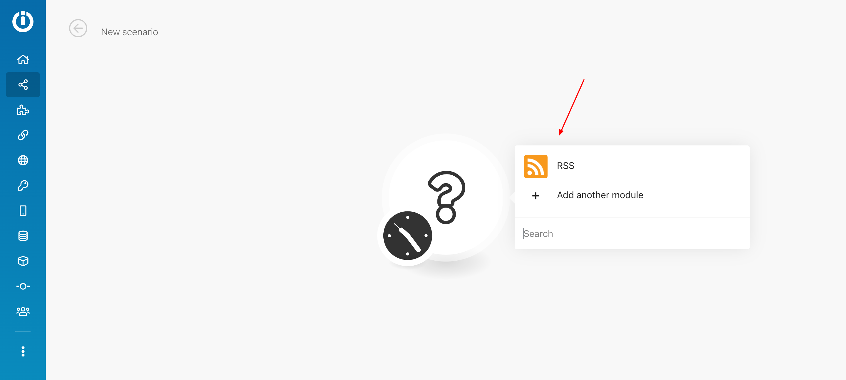 4. Click on the circle and choose RSS for the first scenario's module.