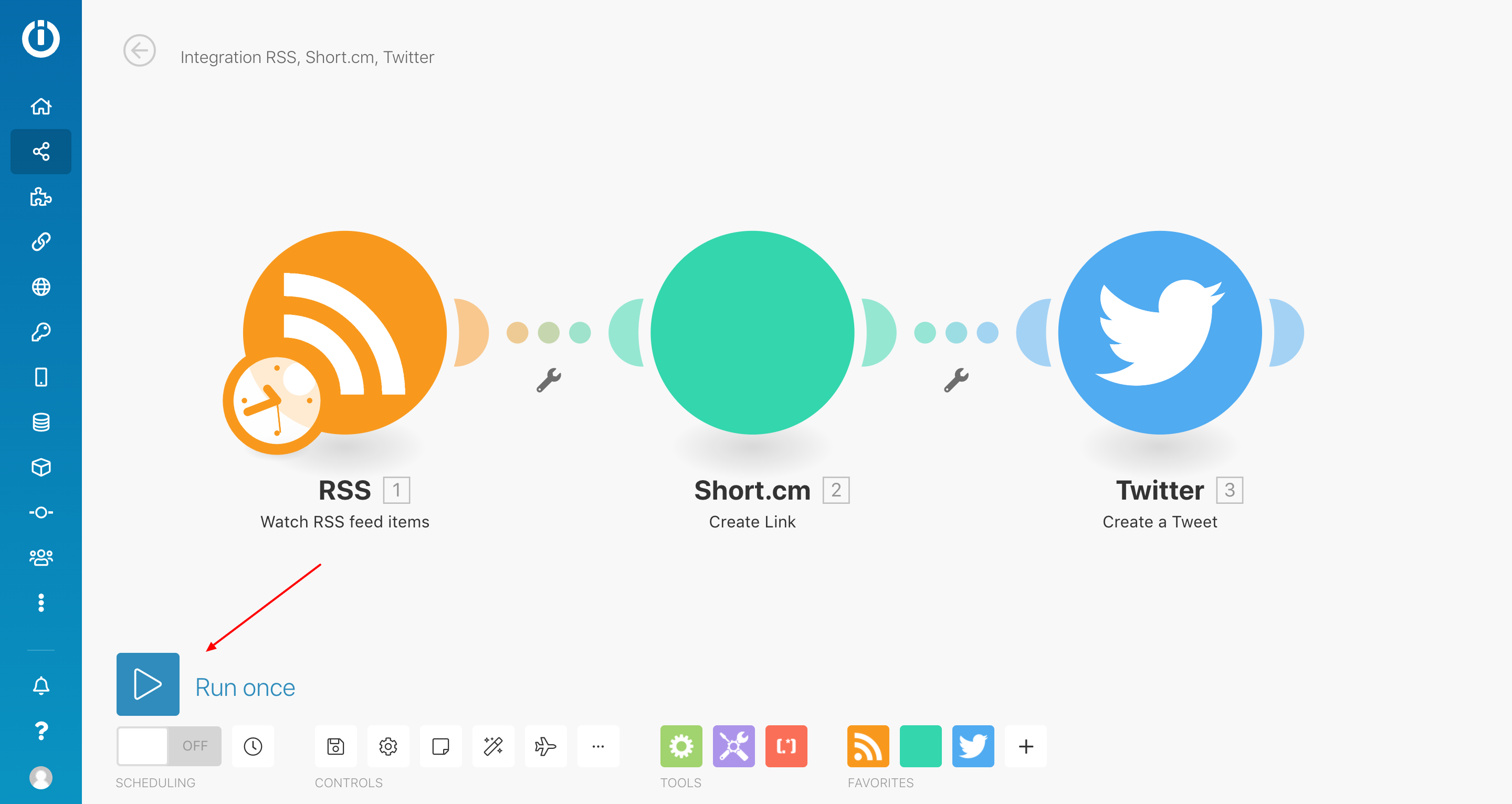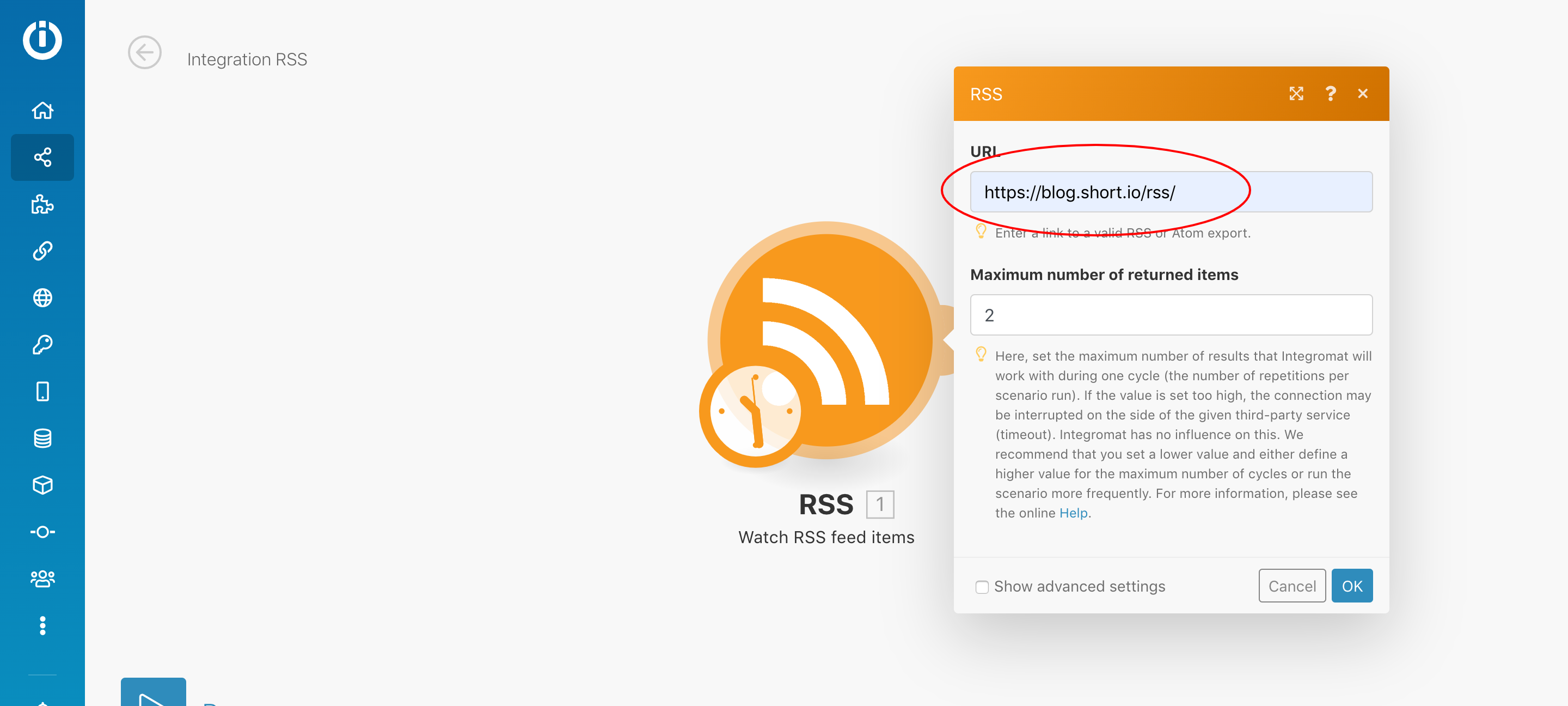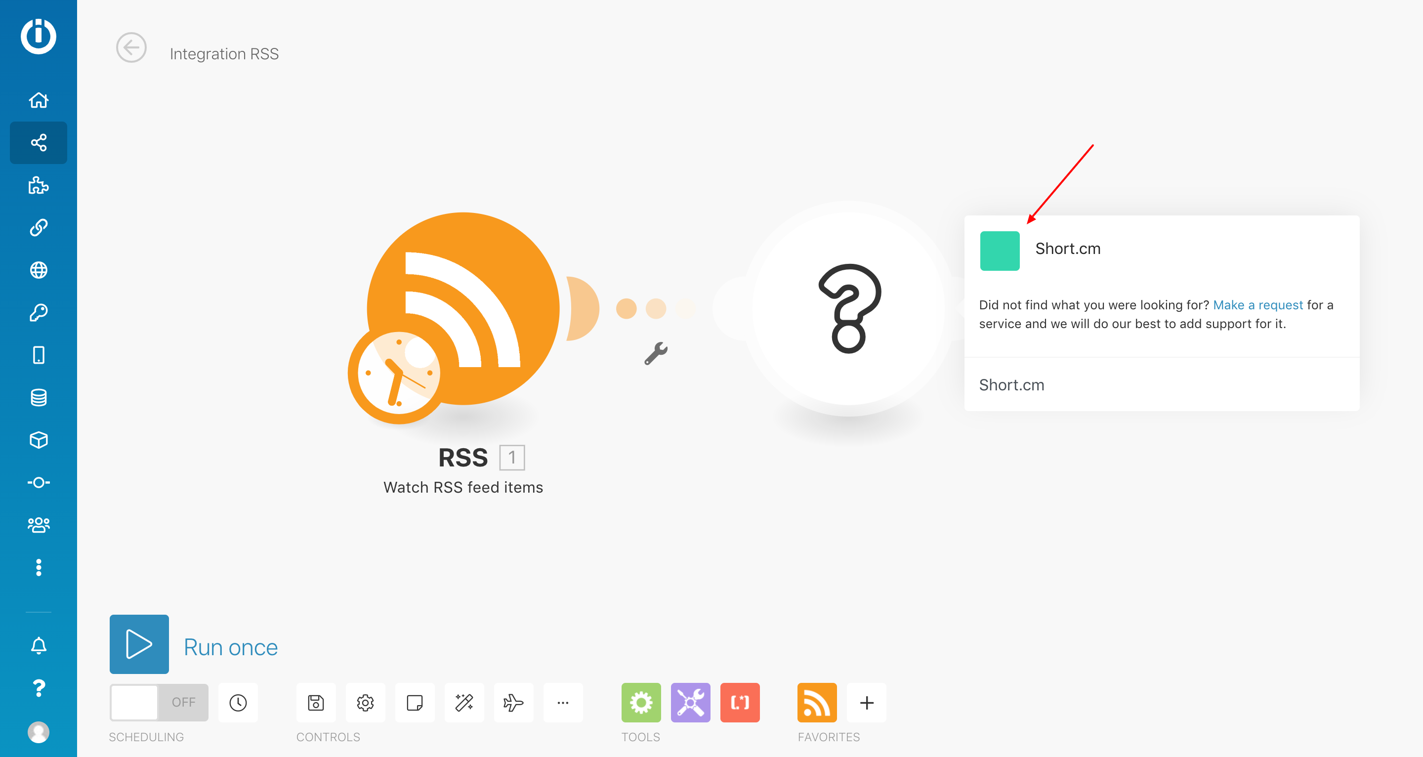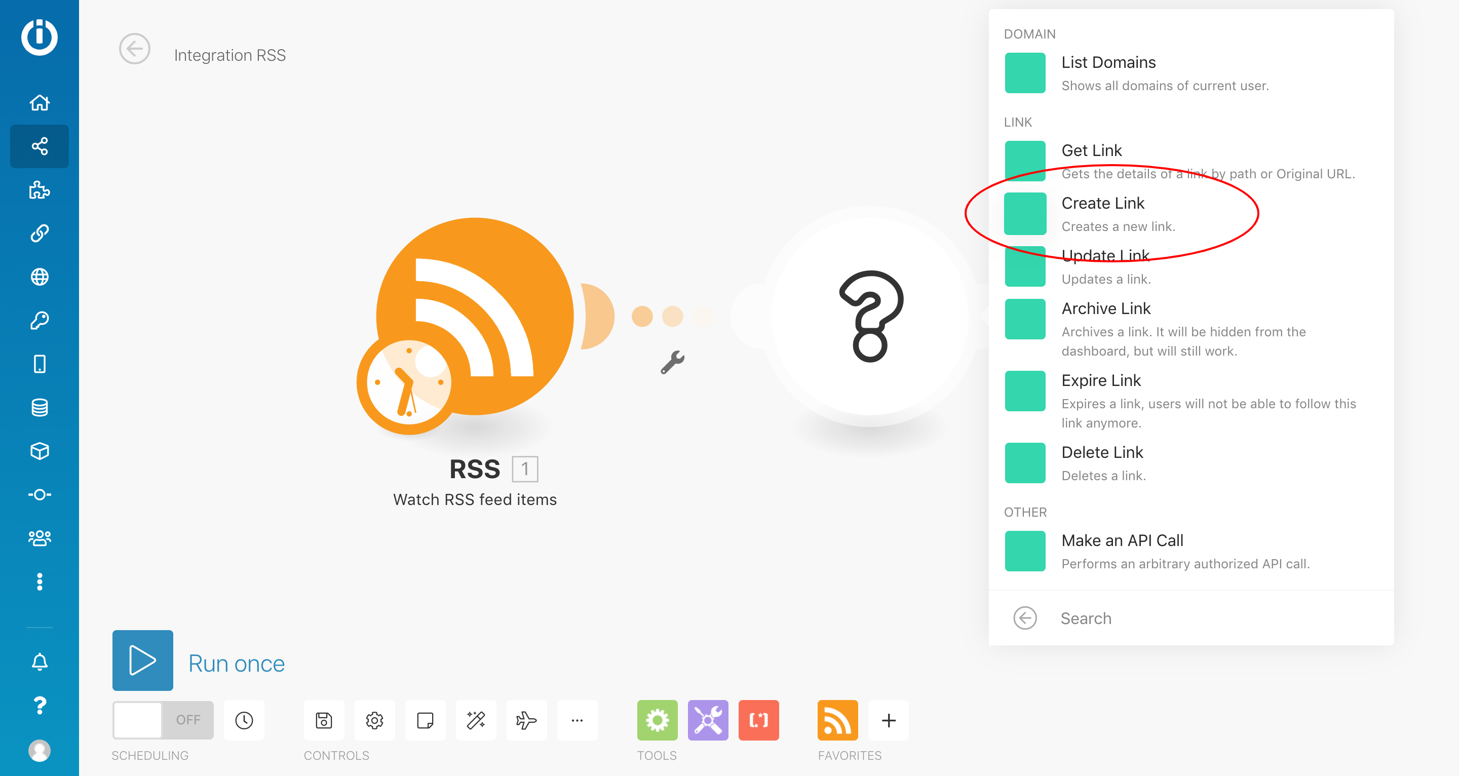 4. Click on the circle and choose RSS for the first scenario's module.