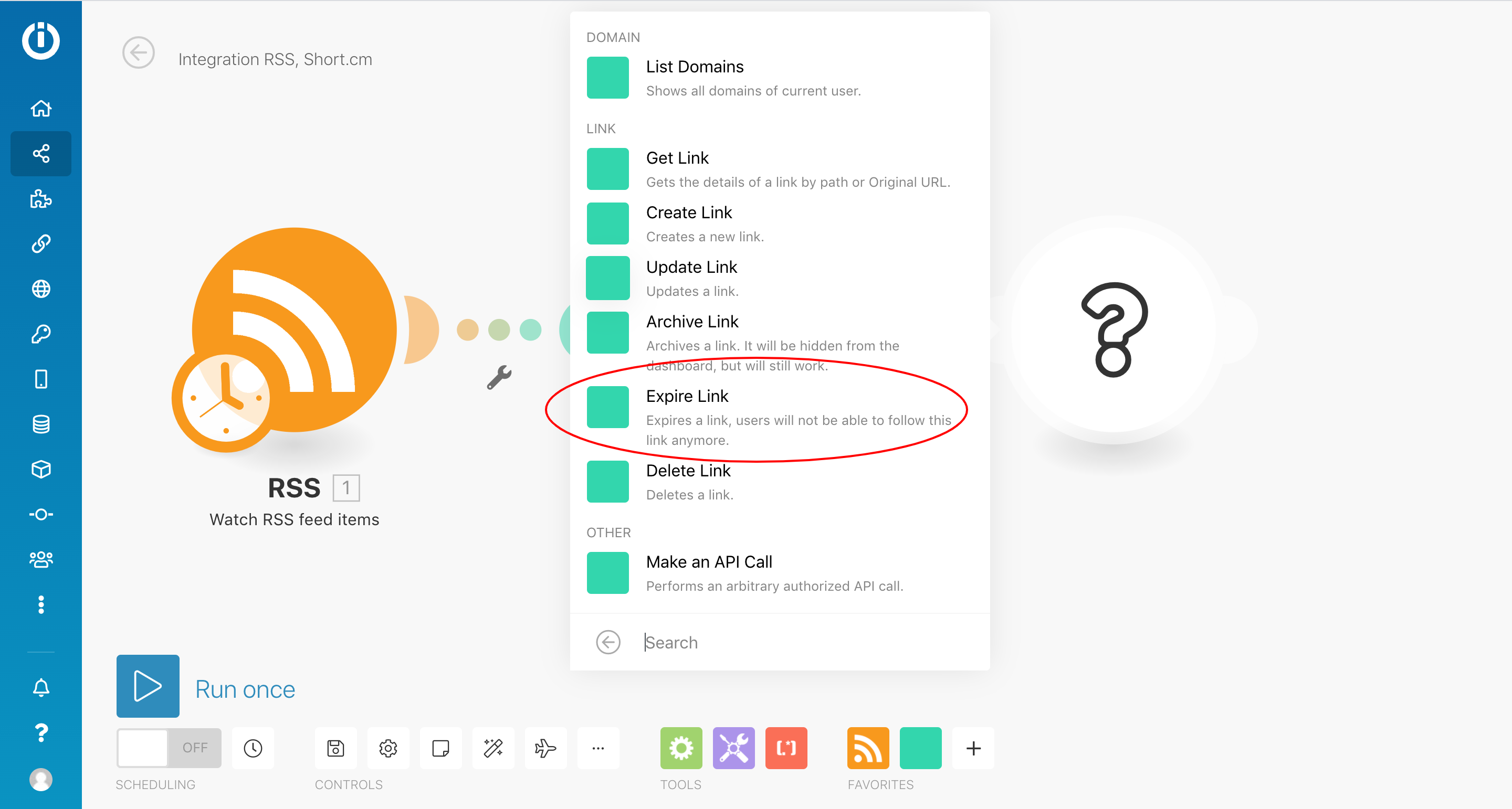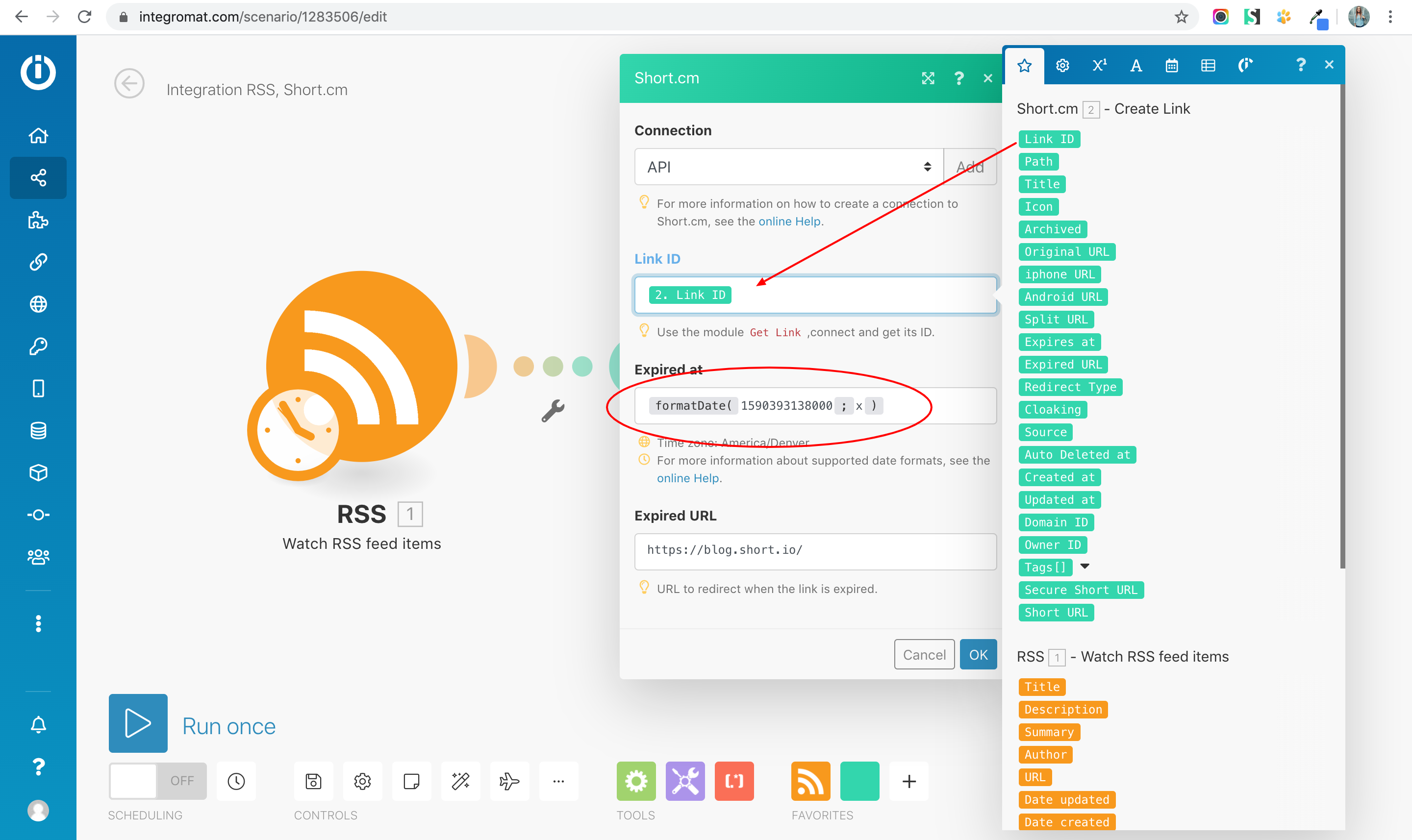 Create short links with automatic link expiration. As an example: Every time a new item is posted to a watched RSS feed, Make will automatically shorten a link on Short.io and apply link expiration date.