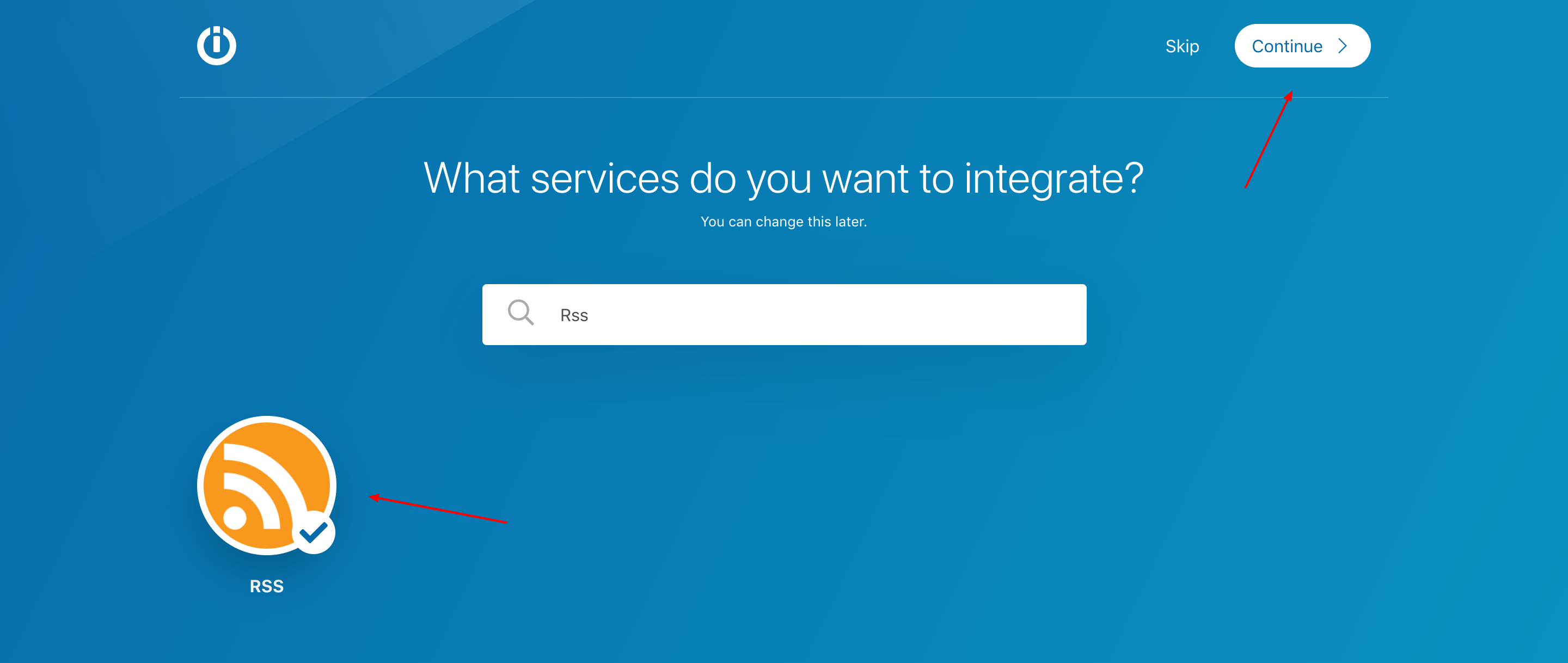 3. Look for RSS > Choose it > Continue