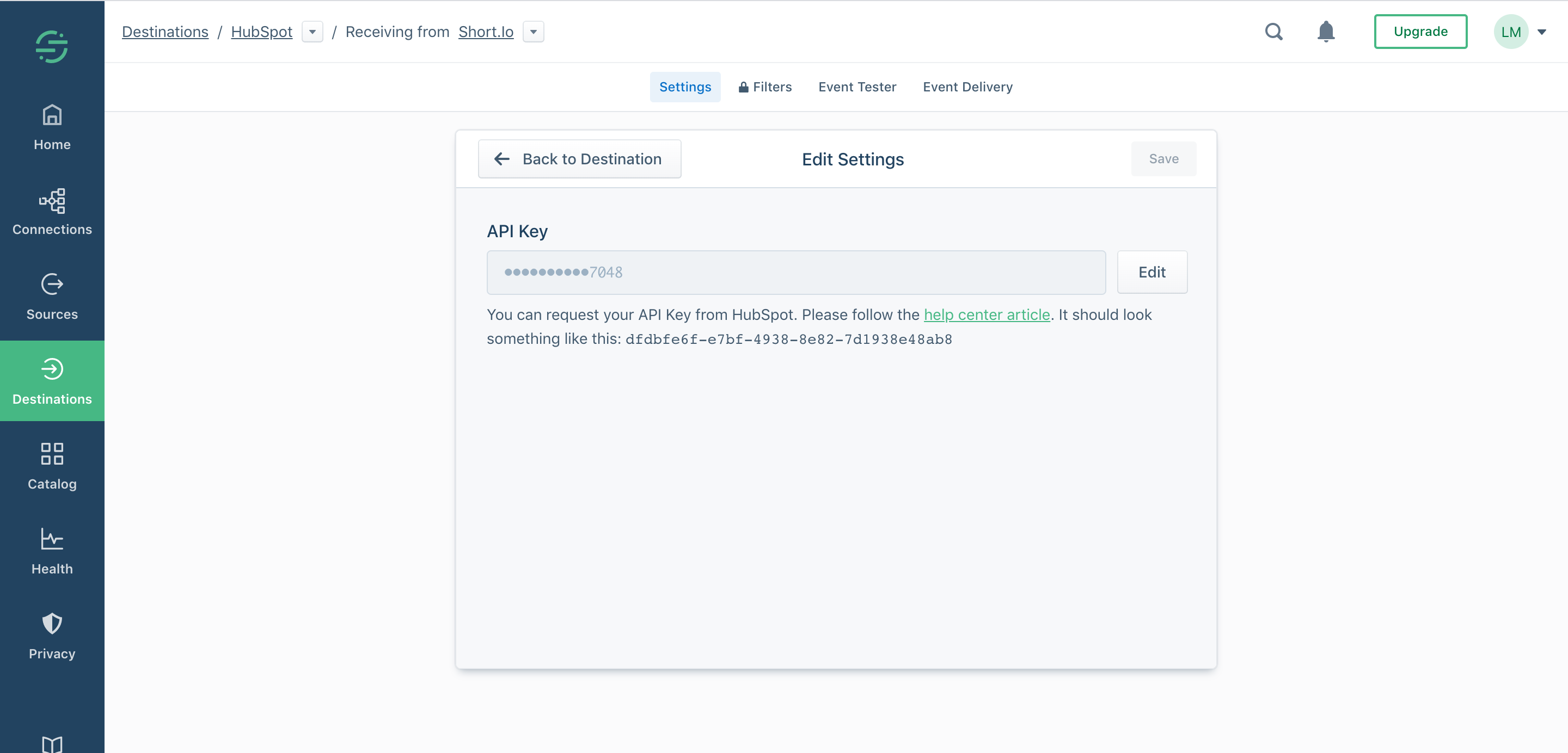 16. API key: You can request your API Key from HubSpot. Please follow the help center article. It should look something like this: dfdbfe6f-e7bf-4938-8e82-7d1938e48ab8