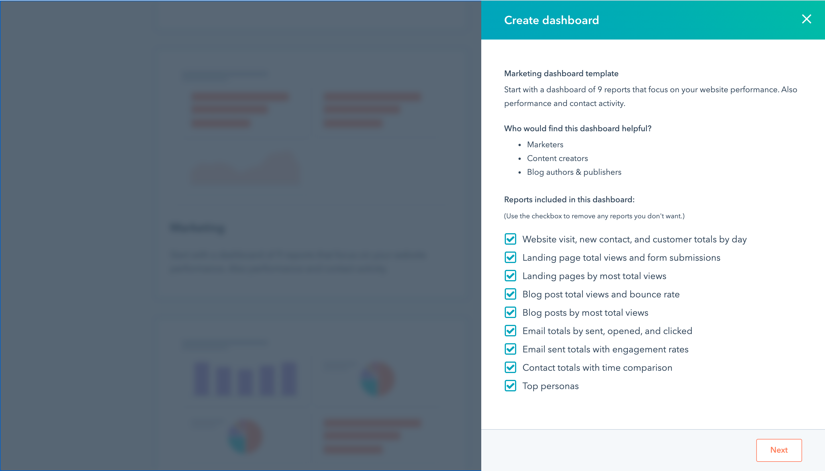 21. Add any dashboard. As for the example, let's choose the Marketing dashboard.