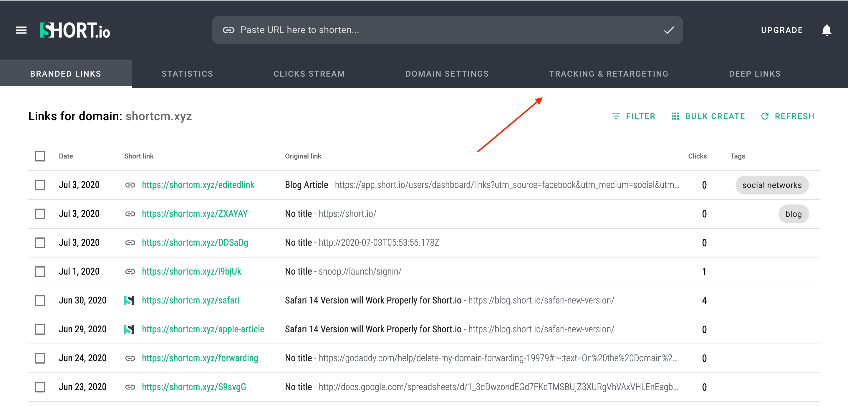 22. The example of tracked success is the number of sessions (redirects) to your short links.