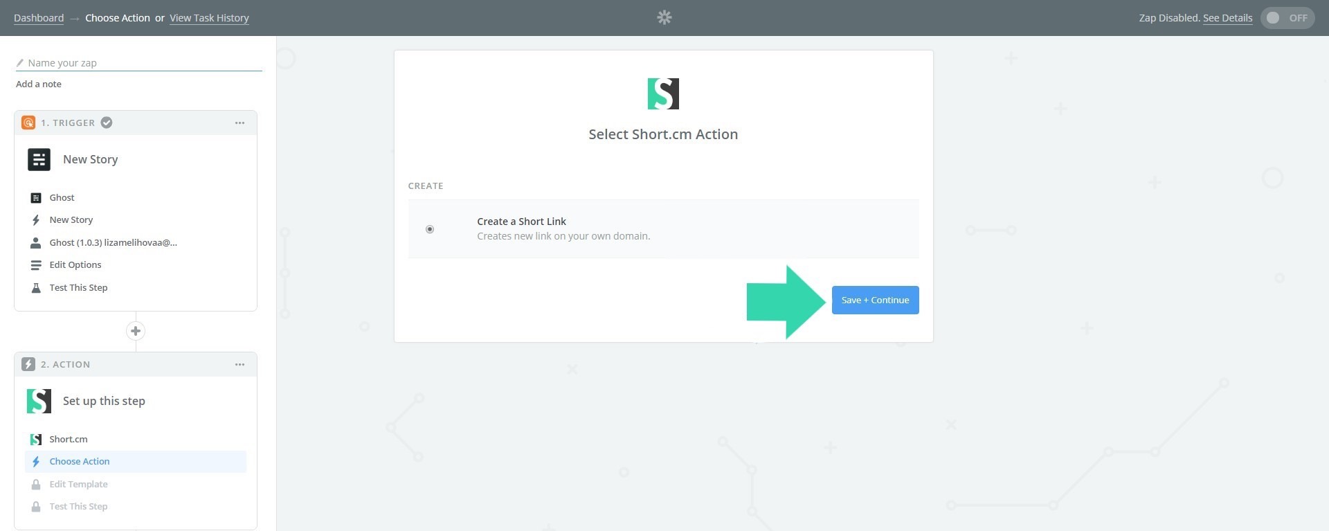 Straight to the video guide or Follow the instruction to configure Short.io & Ghost Zap.