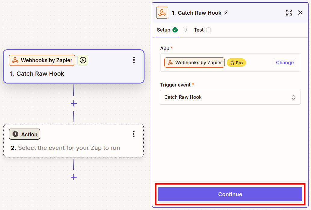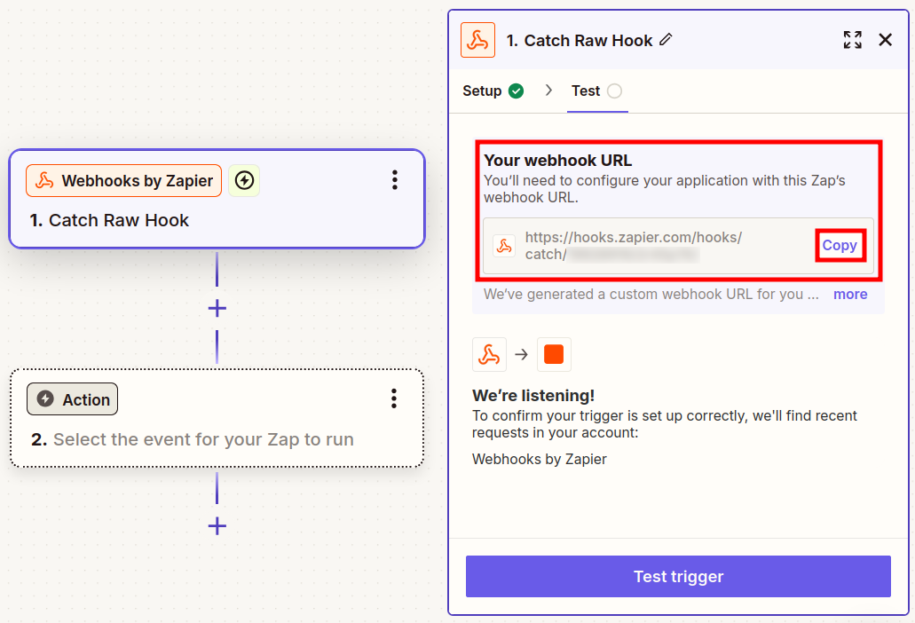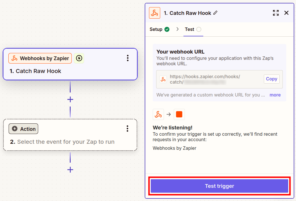 Immediately after that, from the webhook screen in Zapier click on Test trigger: