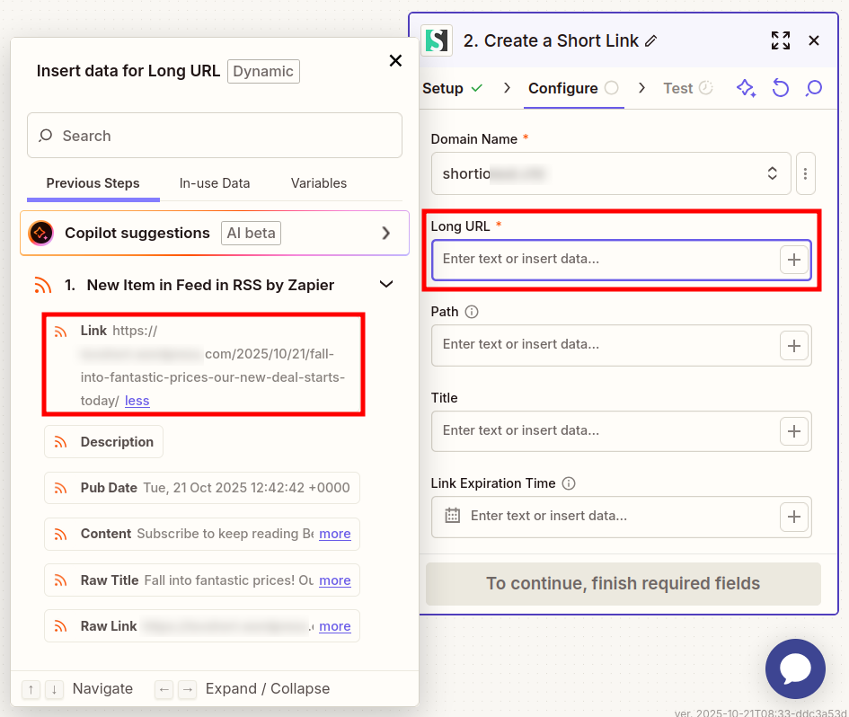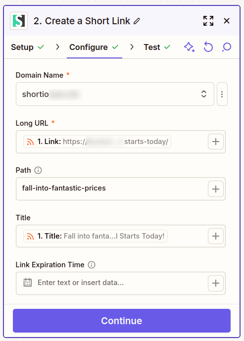 The result record (trigger URL) can then be passed as a long link for processing and shortening.