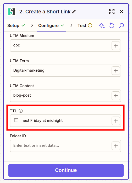 Scroll down to locate the TTL setting. You can select a date from the calendar or even enter human readable text, for example: Next Friday at midnight: