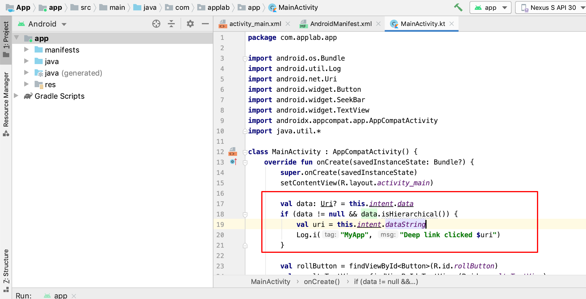 Log.i("MyApp", "Deep link clicked $uri")