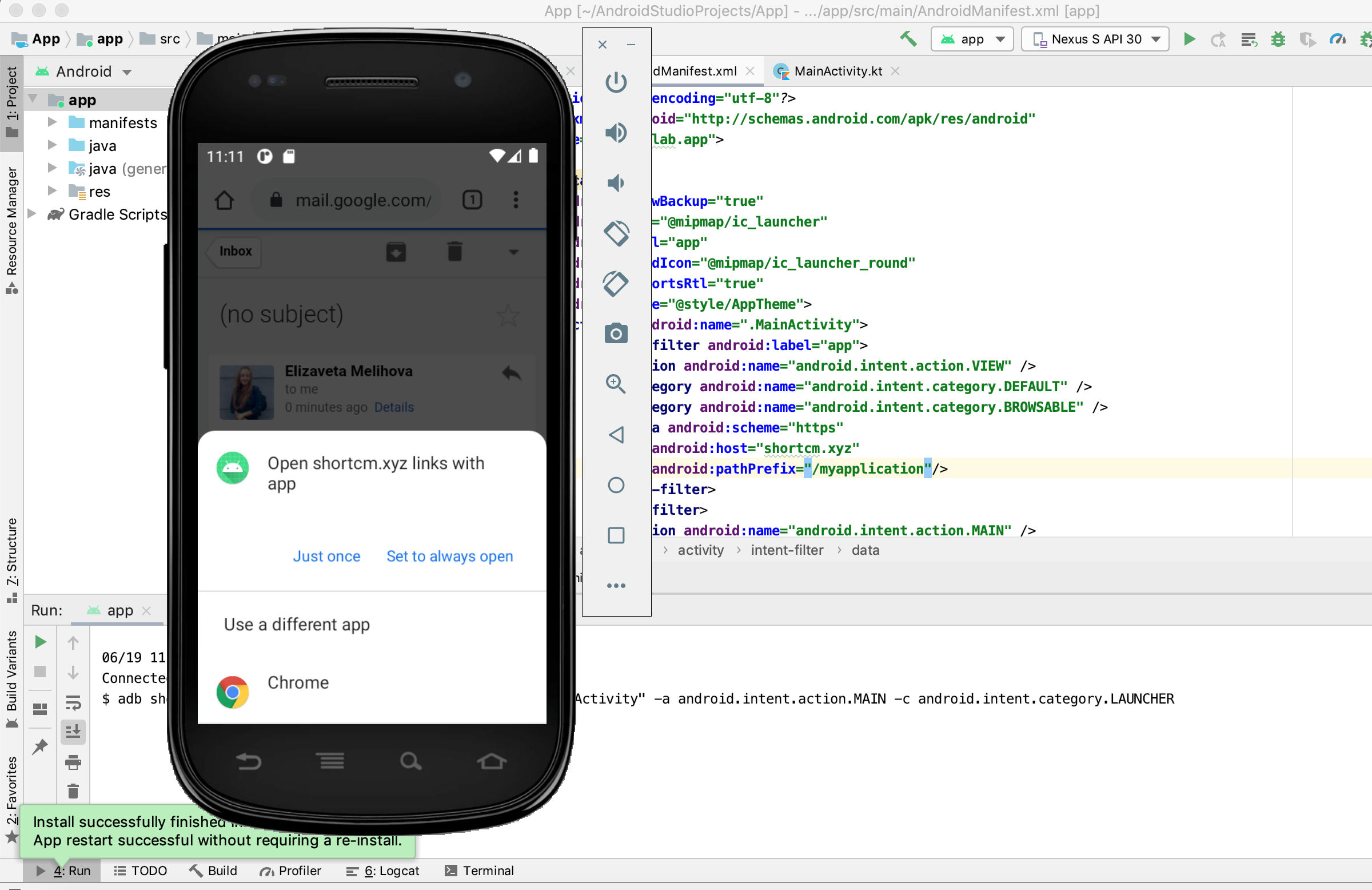 If the link does not exist, you will get an error message. Send a link via email and browse it from an emulator. You will have the option to open the short link using either a web browser or your application: