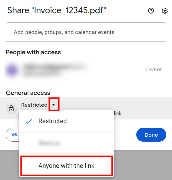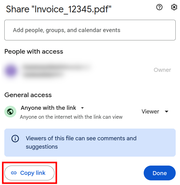 In the next screen click on Copy link and then on Done: