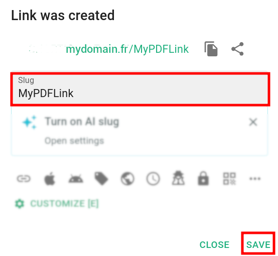 In the next screen enter a name for your short link and click on Save: