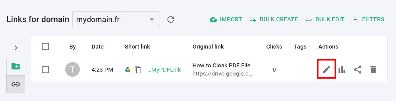 Click on the pencil icon next to your shortened link: