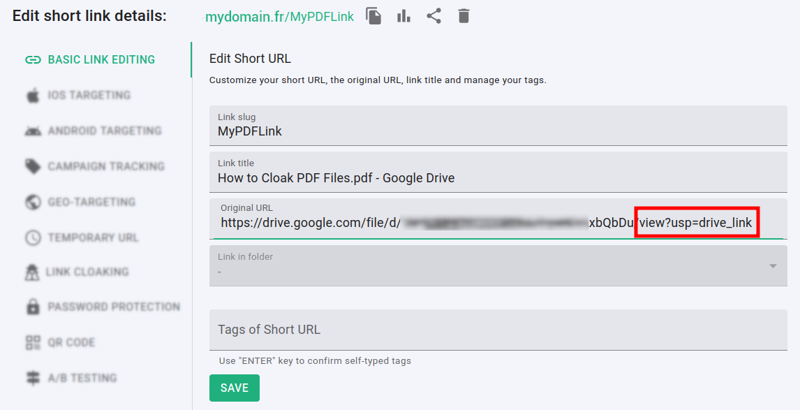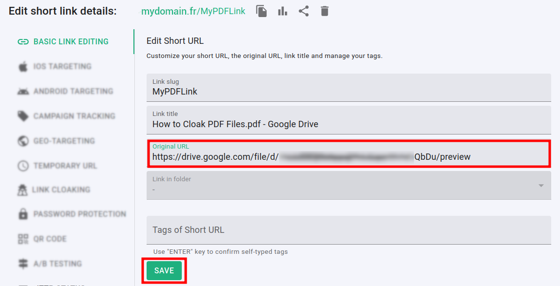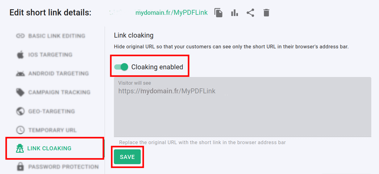 And with link cloaking you can mask the URL in order to protect the PDF file's original address.