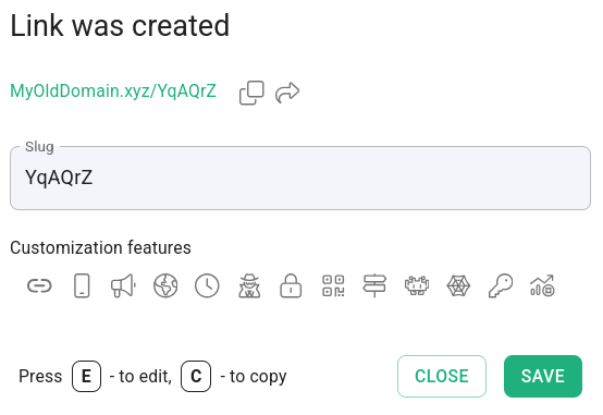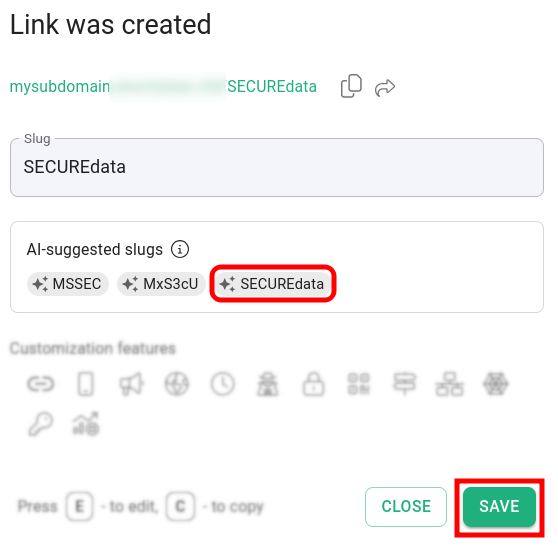 Hereafter, if the option is disabled, when you shorten a link the Short.io AI slug generator will no longer suggest relevant unique identifiers for you:
