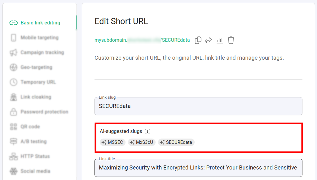 How to create a short link with an AI-generated slug