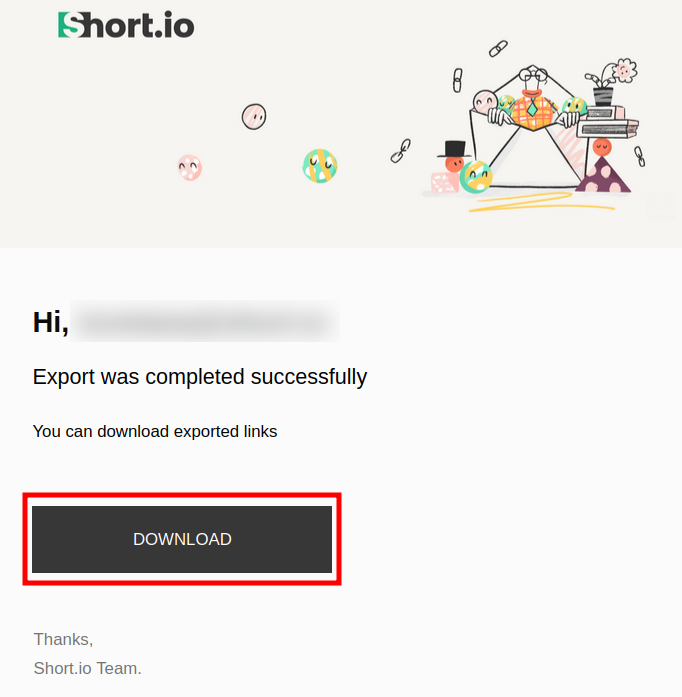 You will receive an email from the Short.io team which confirms the successful export. Click on Download to open the file with your links data: