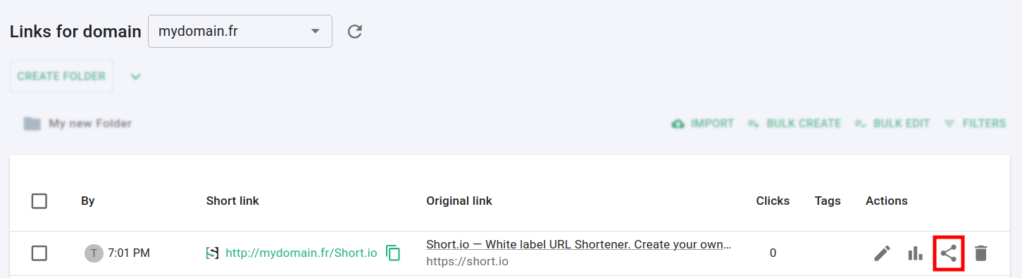 You can easily share your short links from the Short.io dashboard to Facebook, Twitter, LinkedIn, Reddit, and Pinterest.