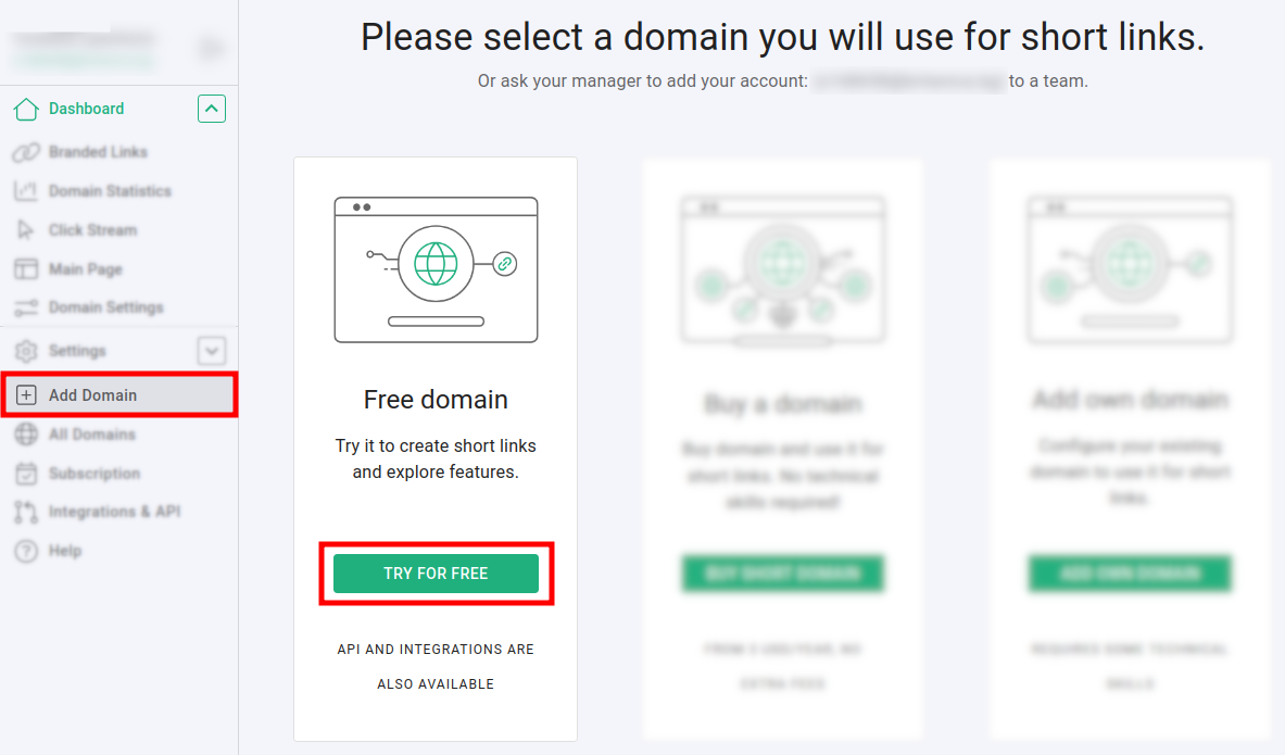 Short.io offers you the chance to register a subdomain of our short.gy domain and utilize it for link shortening at no cost.