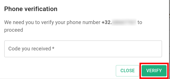 In the next dialog click on Verify and then enter the received code to confirm your phone number: