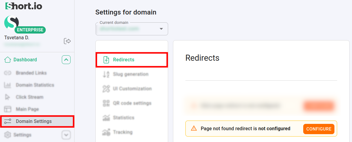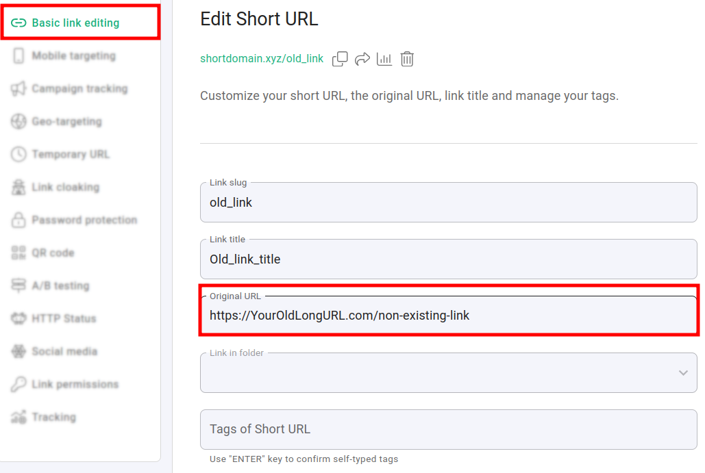 For example, if your visitors try to browse a short link pointing to your old domain: