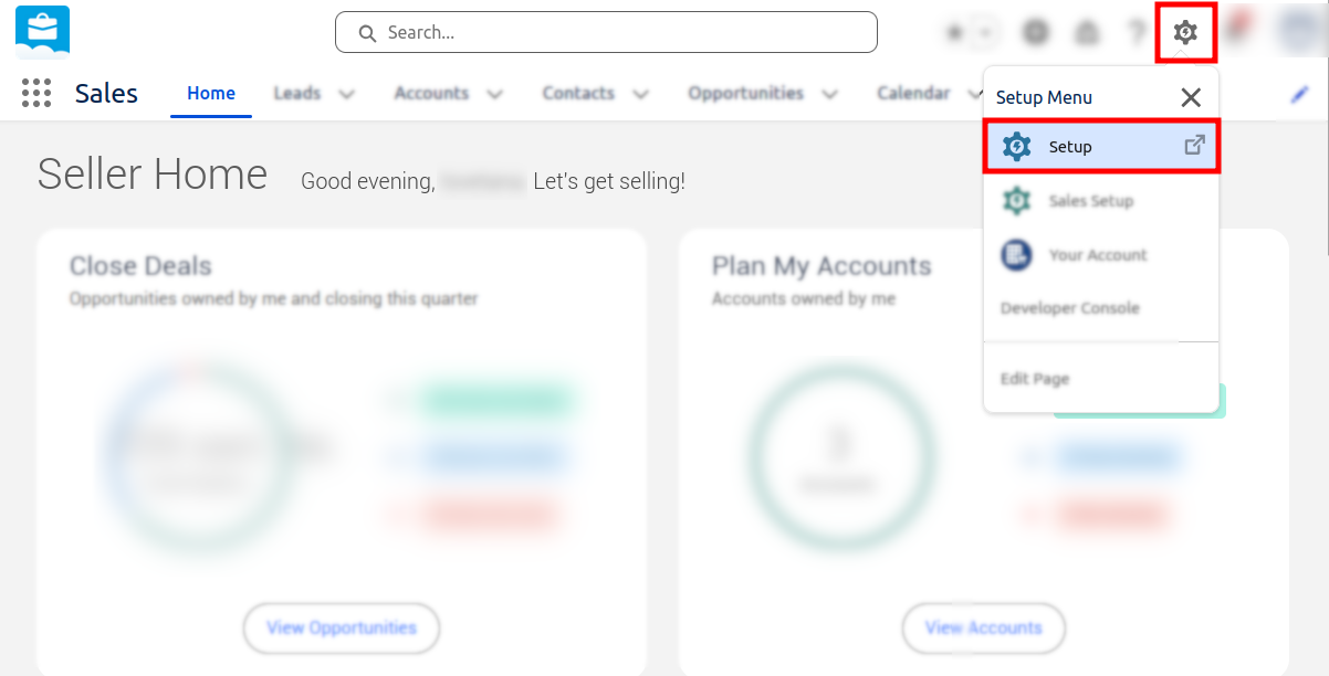 From the Home page click on the Setup menu icon