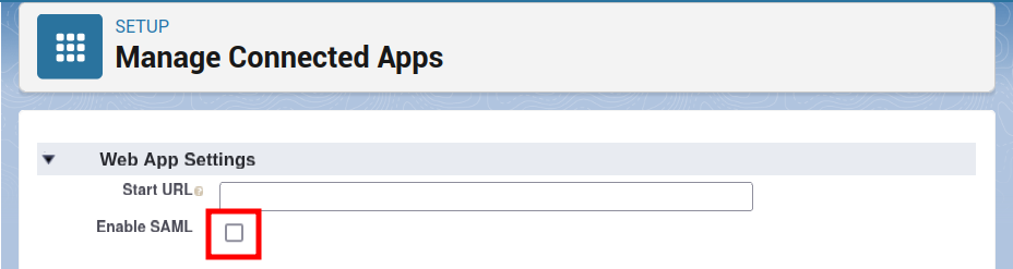 Navigate to the Web App Settings and Enable SAML: