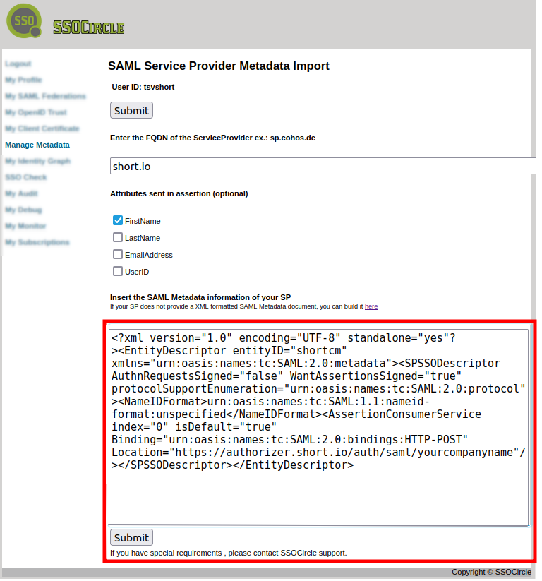 How to configure Short.io SSO via SSOCircle