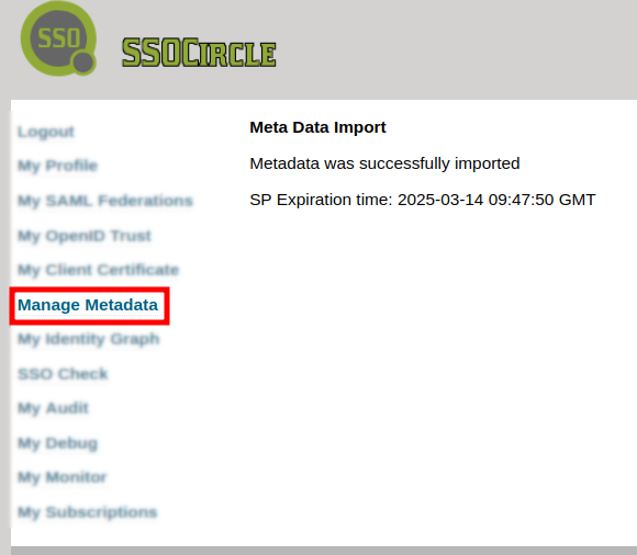Click on Submit. The metadata is successfully imported: